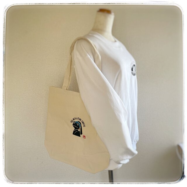 シンプルな生成りにワンポイントの刺繍が映えるので、仕事・学校・買い物どれにも馴染みます。