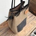 nico:オリーブ(タンニン染め帆布×イタリアンレザー巾着バッグ)受注製作