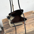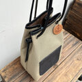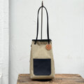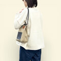 nico:ベージュ×ブラック(撥水加工ナイロン素材×イタリアンレザー巾着バッグ)受注製作