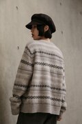温もりを誘うデザイン: 冬の風物詩ともいえるフェアイルー模様が、ひと目で季節感とぬくもりを演出します。シンプルな丸首で、重ね着の邪魔をしません。