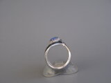 リングのサイズは13.5号、重さは14g、最大幅は20mm、手のひら側の幅は14mm、金属部分は純銀です。