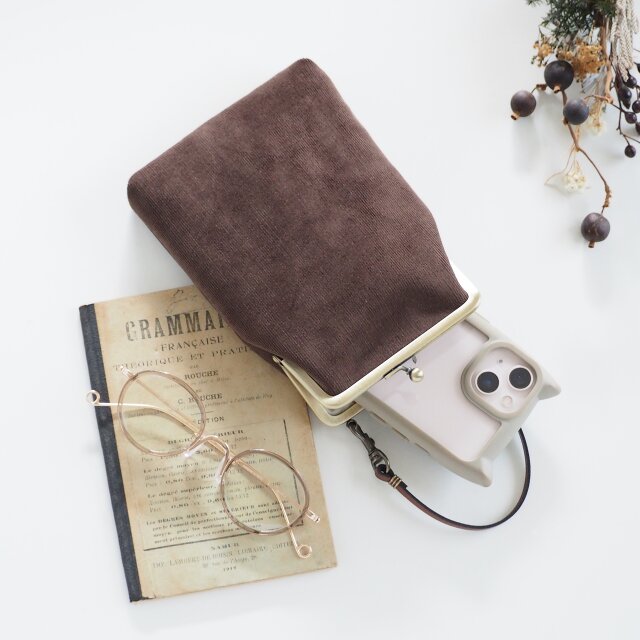 ■コーデュロイのがま口スマホショルダーポーチ Mサイズ■ camille (cdr-br)