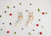 ふふふと笑うような、そんな日常が少し楽しくなる、うれしくなる。あなたにとってそんな靴下であって欲しいという思いをこめて制作しています。