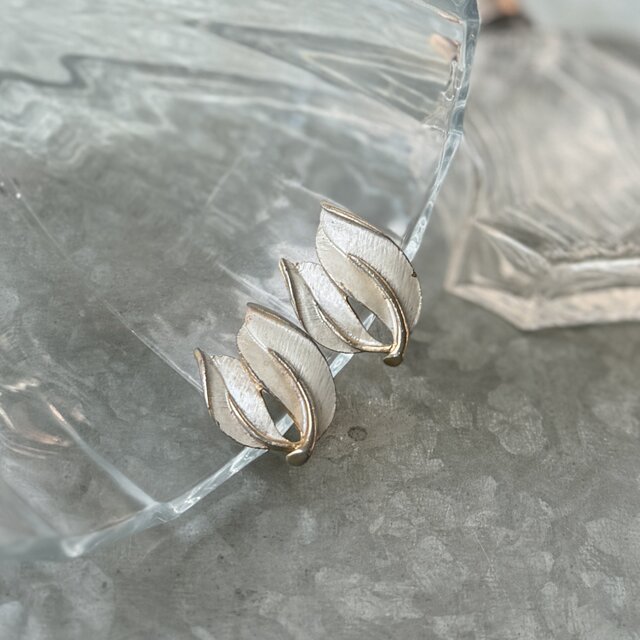 立体的な二枚の葉が重なり合うようなデザインが特徴的で、現代にはないレトロで品のある存在感を放ちます。