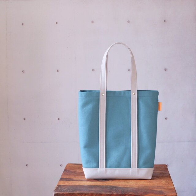 A4縦型トート<ターコイズ×ストームグレー> 倉敷帆布