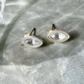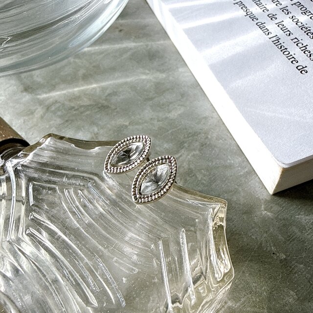 マーキスカットされたラインストーンが煌くシルバートーンピアス。
