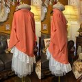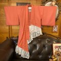 【単衣 色無地 着物 2way アシンメトリー ガウン 羽織り ドレス ワンピース ハンドメイド 和洋折衷 洗える 化繊 リメイク 名古屋帯サッシュベルト レトロ 古着 多幸感たっぷりコーラルピンク KD-93】