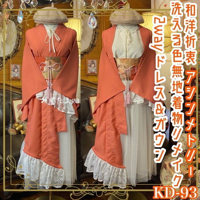 単衣 色無地 着物 2way アシンメトリー ガウン 羽織り ドレス ワンピース 和洋折衷 洗える 化繊 リメイク KD-93