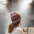 帽子全体に編み込んだ北欧柄とシェットランドウールの風合いが温かみのあるニット帽に仕上がりました。