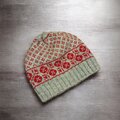 シェットランドウールを使い北欧柄を編み込んだニット帽です。
