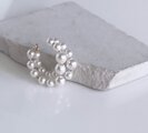 ご好評いただいているパールの連なりがクロスしたイヤーカフと新作の小ぶりなパールのキャッチレスピアス。