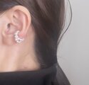 パールの連なりが交差する程よいボリューム感のイヤーカフ。