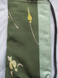 正絹の緑系の花柄の訪問着と正絹の絞りの着物を組み合わせて作りました。