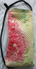 7810 絞りと花柄の着物で作ったポシェット丁寧な作りの作品が届きました。柄もかわいらしく写真のイメージ通りでした。 発送も即日のご対応いただきました。 スマホを入れて近所の買い物などに使いたかったのですが、絹製ですからもったいなくてどうしようかと悩んでいます(笑) どうもありがとうございました。