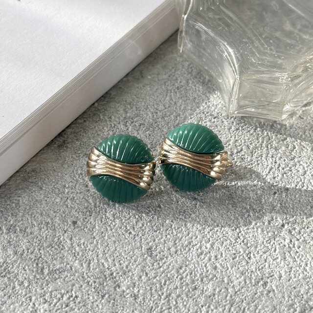程よい小ぶりなサイズで現代のさまざまなシーンの着こなしに馴染み、シンプル、カジュアル、エレガント、モードスタイルなど、レトロでさりげなく個性あるアクセントが映える素敵なヴィンテージイヤリングです。