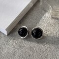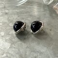 PA455-【 AVON 】エイボン・ヴィンテージピアス 1980's Black Cabochon Silver Tone