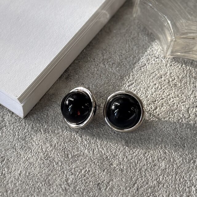 半円ドームのぷっくりとしたフォルムのグラスカボションで、ブラックオニキスのようなシックな印象が魅力的です。