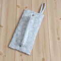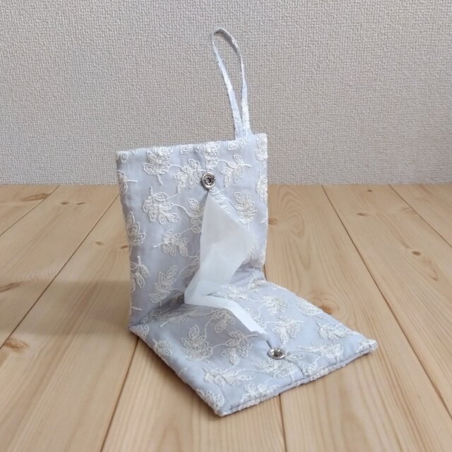 刺繍生地を使用した、携帯用のティッシュケース(持ち手付き)です。