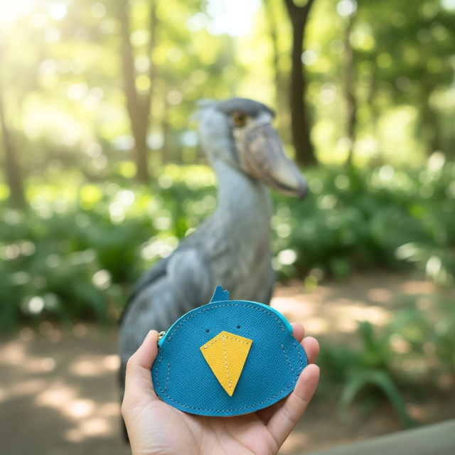 どこか間の抜けた表情のハシビロコウをモチーフにしたファスナーウォレットです。