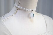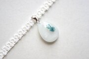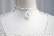 【受注製作】レジンアート ドロップモチーフとタティングレースとサテンリボンのチョーカー〈白雪と花〉