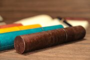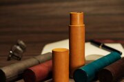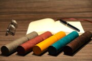 芯材の表面に薄い革を巻きつけた物とは違い、1.2mm厚の革を貼り合わせた2.4mm厚の革を使っていますので、長く使え、経年変化も楽しめます。