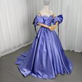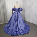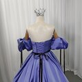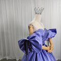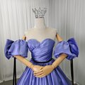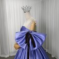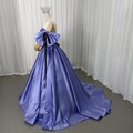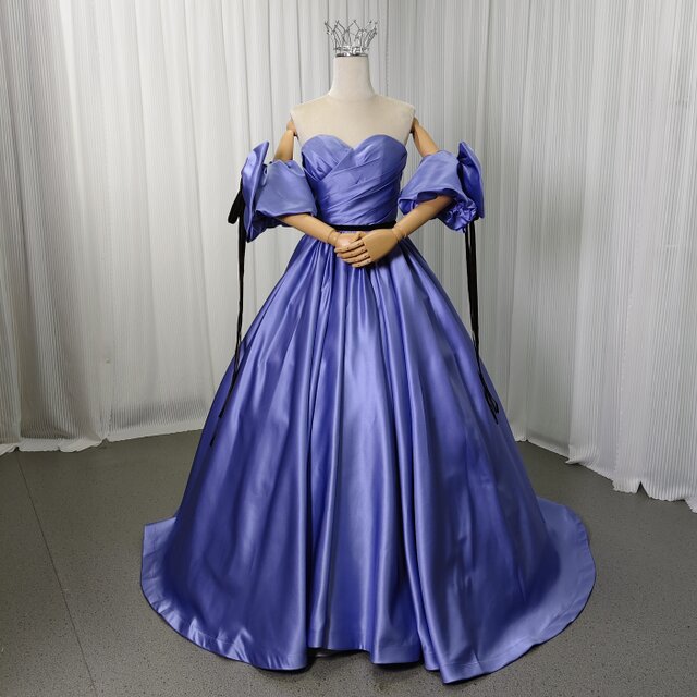 カラードレス パープル ベアトップ 取り外し袖 リボン 光沢サテン 編み上げ ミニトレーン 謝恩会