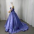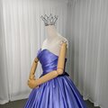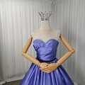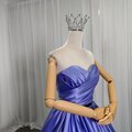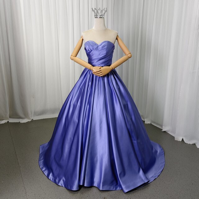 カラードレス パープル ベアトップ 光沢サテン 編み上げ ミニトレーン 謝恩会