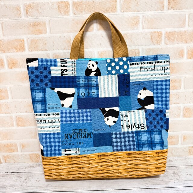 大きいレッスンバッグ(裏キルト) 【パンダ★青】