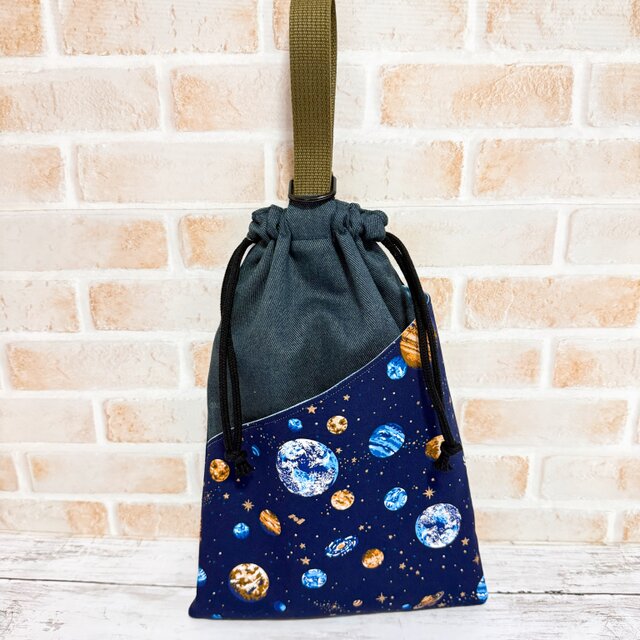 シューズ袋 巾着 Dカン ナイロン 持ち手 巾着袋 子供用 宇宙柄 惑星柄