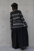 レイヤードスタイルの核として: ジャケットやコートの下に最適なインナーとして。ハイネックが首元をすっきりと整え、脱いだ時に見える模様がスタイルのアクセントになります。袖を少し折り返して着るのもおすすめです。