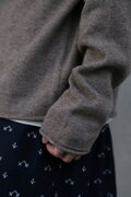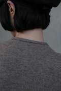 ふんわりクルーネック:首元をきつく締め付けない、柔らかく立ち上がったクルーネック。程よい高さで、首筋を上品に見せながらも、窮屈さは一切ありません。顔周りを優しく包み、気品ある雰囲気を醸し出します。