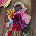 2026年★ボルドーの百合とピンクのダリアのお正月飾り しめ飾り お正月飾り 花