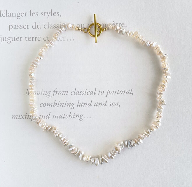 天然の証ですので、人工パールや貝パールなどにはない、自然の風合い、素材感をお楽しみいただけたらと思います。