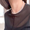 花びらのようにカーブした小さなケシパールをグラデーションに組んだチョーカー。