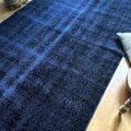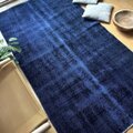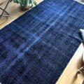 112.5×209藍色オーバーダイ ワンカラーラグ トルコヴィンテージラグ