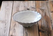グレーの土でろくろ挽きした深さのある鉢です。