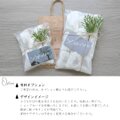 ※サシェのみの場合、使用環境によっても異なりますが香りは約2〜3週間ほど、その他の消臭・防虫等の効果は約1〜2ヵ月ほどを目安としてご参考ください。