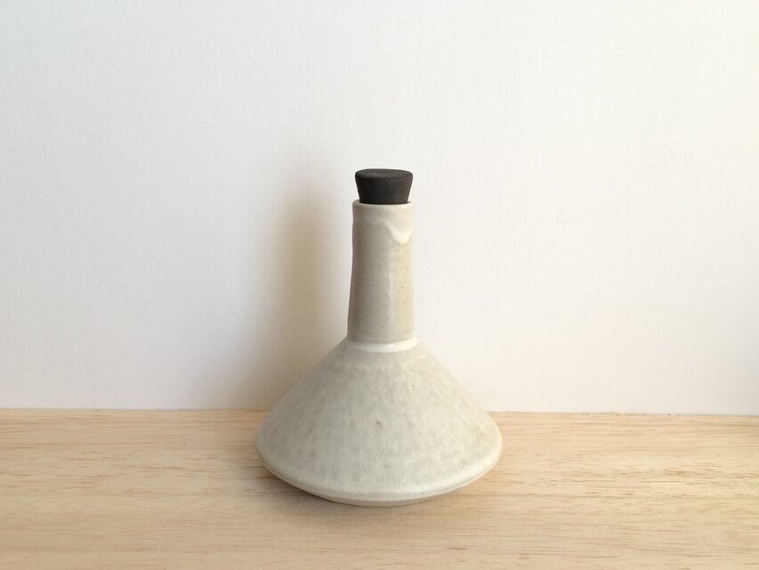 一輪挿しとして使用しない時に口に差しておける焼き締めのフタ付きです。