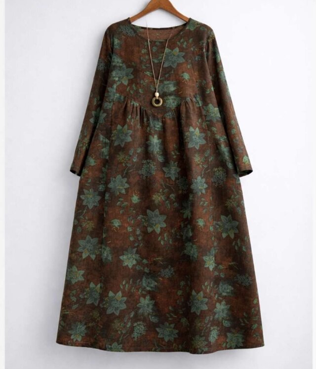 綿麻ワンピース リネン 長袖 花柄 ロングドレス レディス 春秋冬 大人カジュアル ギフト コットン 綿 通勤通学 おしゃれ