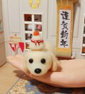 お正月まったりクリームダックスちゃん 樹脂手作りミカン・鏡餅羊毛