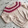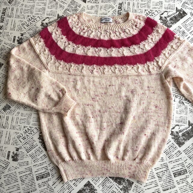 モヘアの美しいグラデーションの波がとても素適な丸ヨークセーターが届きました。上質な毛糸で丁寧に編みこまれていてとても軽いです。猛暑の夏を元気に乗り越えて、ステキなセーターに袖を通せる日を楽しみにしております^^どうもありがとうございました。