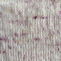 IRODORI YARNさんの手染め糸は色名が花かんむりで、生成色にピンクの濃淡、黄色が散っていて、とても綺麗な色合いです。