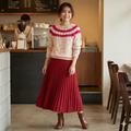 とても綺麗な赤で、刺繍がすばらしくて、うっとり。着るのがもったいないような感じです。大切に着用したいと思います。クォリティの高いセーターをありがとうございました。