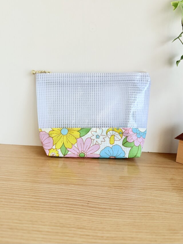 花柄生地とビニール生地を合わせたファスナーポーチです。