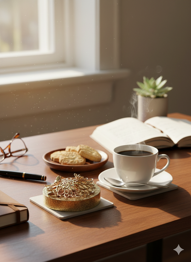 透かしの造形は、思考や時間が静かに重なっていく様子を表しています。