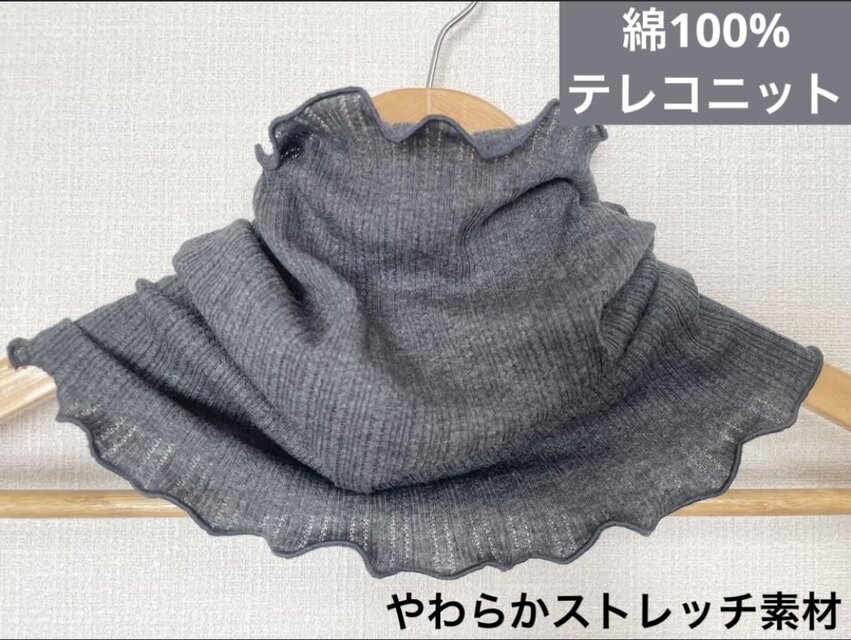テレコニット綿100%ダークグレーハンドメイドネックウォーマーよく伸び寒さ対策にも