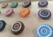 白磁の土で型を取り、素焼きのあと下絵付け用の絵具で色付けし、1200度で焼成しています。