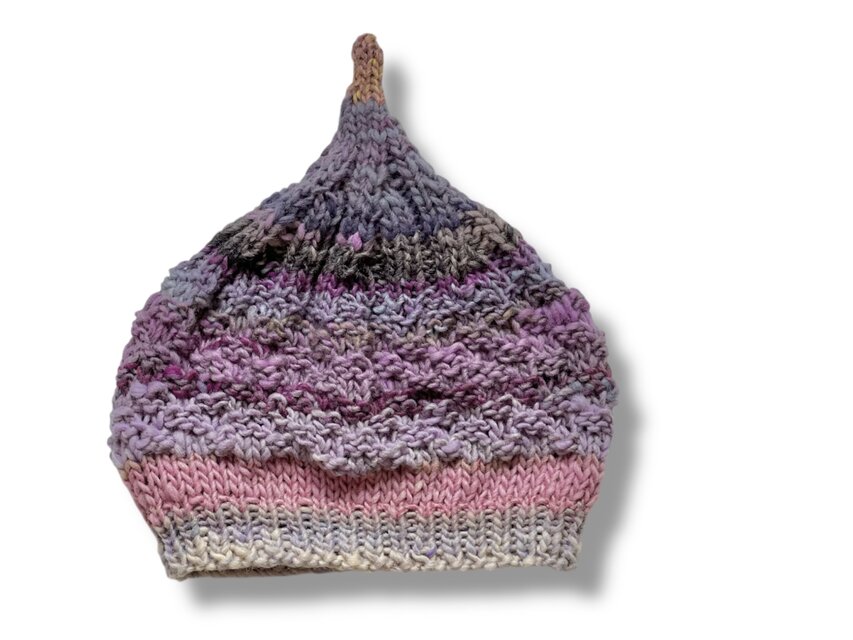 1点限定! 新作2025どんぐりニット帽子 野呂英作毛糸使用 パープルピンクグラデーション 誕生日ギフト・プチギフト