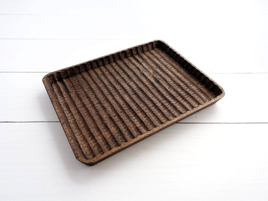 力強い彫りなのに、思いのほか手触りは優しく、また裏面もリバーシブルで使えるという発見もあり、いい買い物をさせていただきました。奇しくも新潟のへぎそばを送って頂いたのと重なり、へぎそばのへぎってこのことだったんだと合点した次第です。大事に使わせていただきます。有難うございました。