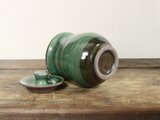 ●素焼後、内側に透明釉、外側は織部釉を掛けて1230℃でまた焼きます。